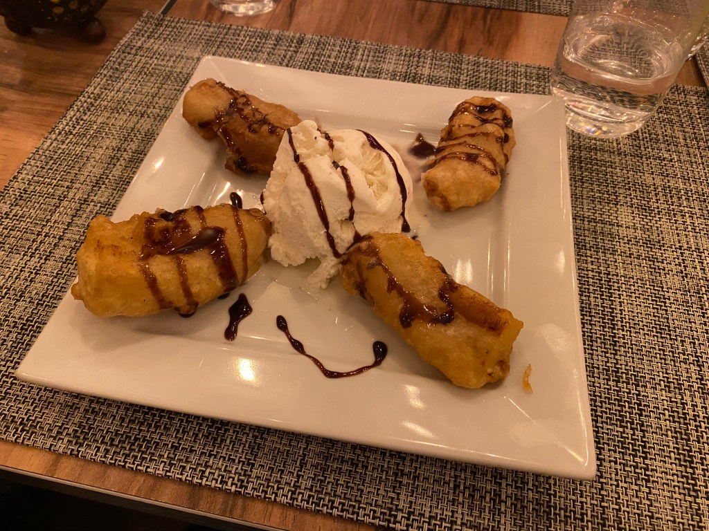 Lastly, for dessert I went for banana fritters, whilst my husband had a caramel parfait. We went with some friends and I was very glad that some of them ventured to have the most interesting thing on the dessert menu – deep-fried ice cream!